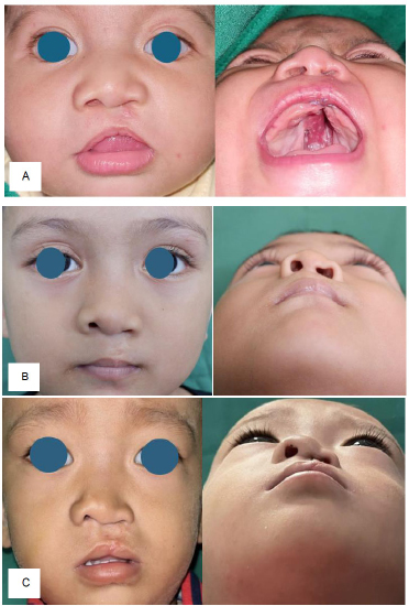 | 3 | female | unilateral complete cleft lip and palate–right | 2 years |