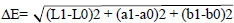 The L*, a*, and b* values were recorded three times for each sample, and an average value was calculated. The extent of color changes of each specimen was calculated using the following formula [11, 15]: