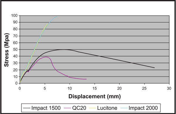 Within the limitations of this study, the Impact 2000 showed improved mechanical properties with high capacity of stress absorption and energy dissipation before the fracture.
