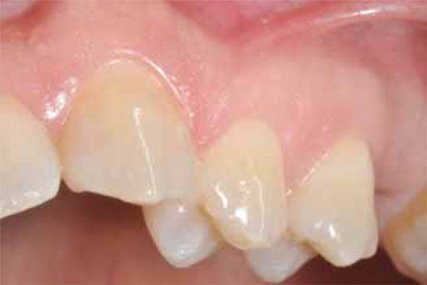 Intraoral photograph, taken thirty months after surgery: here, the healed vestibular gingiva without any tumor recurrence is shown.