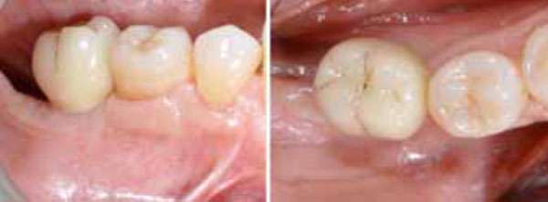 After 15 days, the soft-tissue healing was uneventful, and the previously established prosthetic protocol was followed. A single-crown definitive restoration was delivered 1 month (Fig. 11a, 11b). The prosthesis was placed in occlusion, where the occlusal surface was thoroughly modeled, so that it was in contact with reduced areas during laterality and protrusion excursions, in order to reduce the dislocating vectorial components; more contacts were maintained in maximum intercuspation. Follow-up radiographs were taken at 1, 12, and 24 months after prosthesis delivery (Fig. 12, 13, 14).