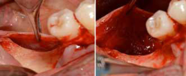 Flap preparation. Mental nerve isolation (a) and alveolar ridge exposure (b).