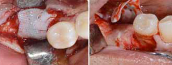 bioresorbable and non-resorbable membrane materials have been tested in experimental and clinical studies, including polytetrafluoroethylene (PTFE), expanded PTFE (ePTFE), titanium mesh membranes, collagen, poly(lactic acid), poly(glycolic acid), and their copolymers [8-2]. Every membrane type has both advantages and disadvantages. Recently a high-density polytetrafluoroethylene (dPTFE) membrane has been designed specifically for bone-augmentation procedures. The dPTFE is cell occlusive, shows minimal inflammation when exposed to the oral cavity, and does not integrate with the tissue for membrane stabilization [13]. Clinical and histological evidence for the use of dPTFE membranes is limited [14-17]. Some indications can be found concerning its use in guided tissue regeneration and guided bone regeneration in immediate implant-placement sites and fresh extraction sockets [18, 19].