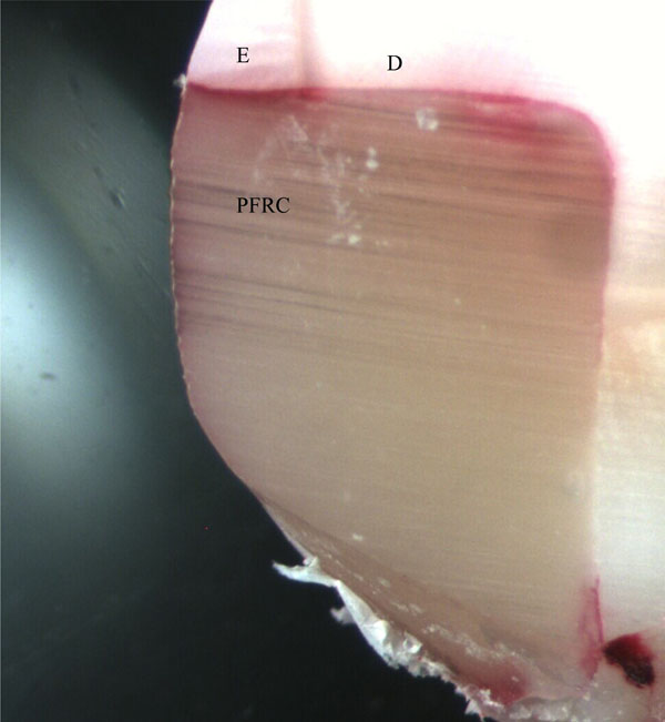The representative tooth sections without GFRC at the interface. D: corresponds for dentin. E: refers to enamel. For abbreviations refer to Fig. (1).