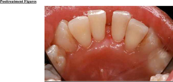 Significant improvement in bone quantity and a reduction in the separation of teeth 24 and 25 are evident on the 6-month posttreatment radiograph.